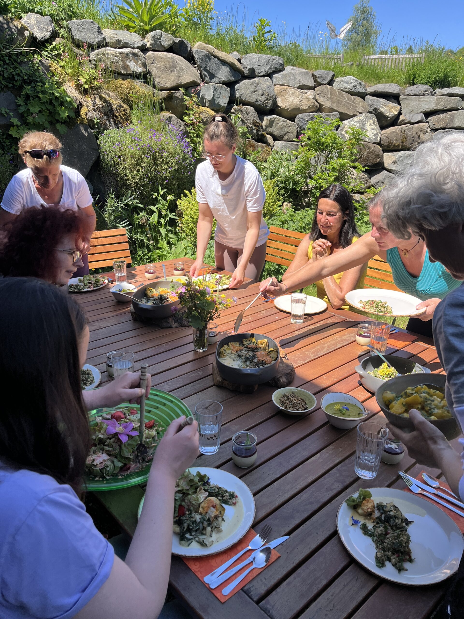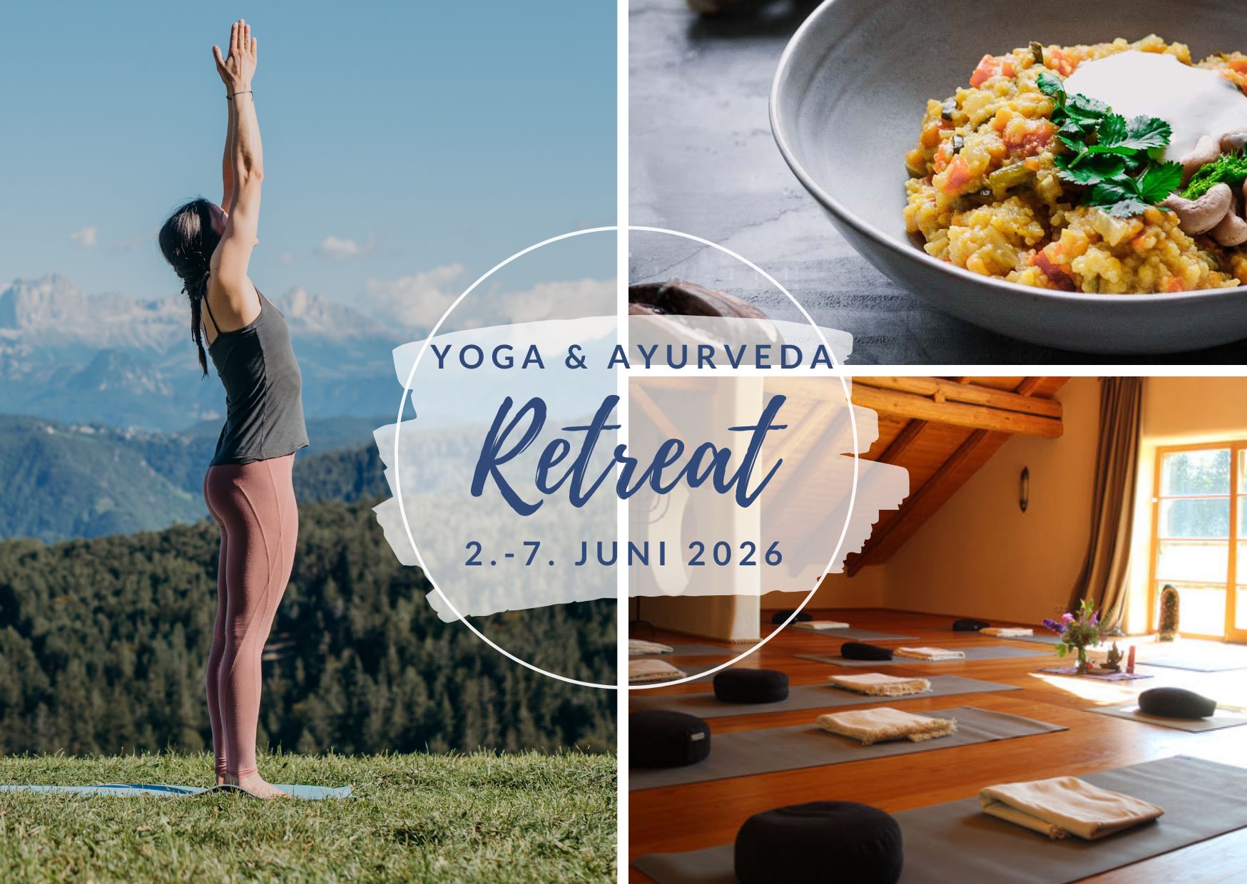 Drei mal täglich werden wir mit köstlichen, liebevoll zubereiteten Gerichten verwöhnt. Gemeinsam genießen wir gesunde, nährende Speisen, die nicht nur ein Fest für die Sinne sind, sondern auch eine wunderbare Gelegenheit, mehr über ayurvedische Ernährung und ihre Wirkung zu erfahren.